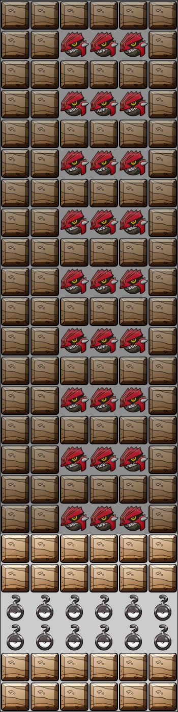 Interferencia 1 Al comenzar la fase, elige una acción: -Rellena las filas 1 y 2 con [Piedra,nada,Piedra,nada,Piedra,nada,nada,Hielo,nada,Hielo,nada,Hielo] -Rellena las filas 5 y 6 con [Hielo,nada,Hielo,nada,Hielo,nada,nada,Piedra,nada,Piedra,nada,Piedra] Tras 1 vez, cambia de interferencia. Repite cada 3 turnos.
