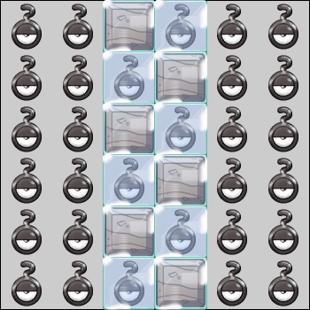 Interferencia 1 Tras 1 turno, elige una accion: -Rellena el bloque 3x4 que comienza en 4:2 con [Metal,Metal,Metal,Metal,Metal,Goomy,Metal,Metal,Zygarde (50% Forme),Metal,Metal,Metal] Tras 1 vez, cambia de interferencia. Repite cada 1 turno.