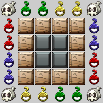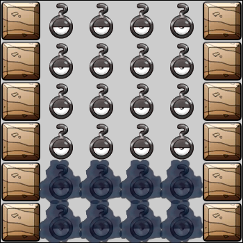 Interferencia 1 Al comenzar la fase, elige una acción: -Rellena la fila 4 con [Piedra,nada,nada,nada,Piedra,nada] -Rellena la fila 4 con [nada,Piedra,nada,nada,nada,Piedra] Tras 3 veces, cambia de interferencia. Repite cada 3 turnos.