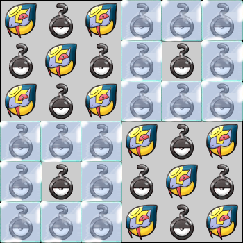 Interferencia 1 Al comenzar la fase, elige una acción: -Rellena el bloque 2x2 que comienza en 3:3 con Hielo Tras 1 vez, cambia de interferencia. Repite cada 3 turnos.