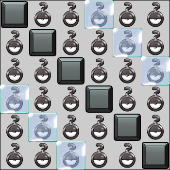 Interferencia 1 Al comenzar la fase, elige una acción: -Rellena el bloque 3x3 que comienza en 1:2 con [Piedra,nada,nada,nada,Piedra,nada,Piedra,nada,nada] -Rellena el bloque 3x3 que comienza en 1:2 con [Piedra,nada,nada,nada,Piedra,nada,Piedra,nada,nada] -Rellena el bloque 3x3 que comienza en 1:2 con [Hielo,nada,nada,nada,Hielo,nada,Hielo,nada,nada] Tras 1 vez, cambia de interferencia. Repite cada 3 turnos.