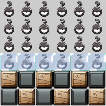 Interferencia 1 Tras 4 turnos, elige una accion: -Rellena la fila 3 con Hielo -Rellena la fila 4 con Hielo -Rellena la fila 5 con Hielo -Rellena la fila 6 con Hielo Tras 1 vez, cambia de interferencia. Repite cada 4 turnos.