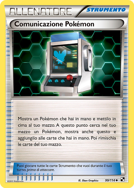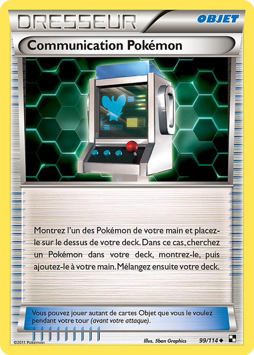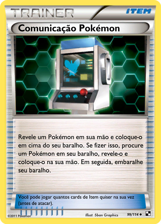 Enseña un Pokémon de tu mano y ponlo en la parte superior de tu baraja. Si lo haces, busca en tu baraja un Pokémon, enséñalo y ponlo en tu mano. Baraja las cartas de tu baraja después.