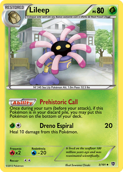 Mira las 7 últimas cartas de tu baraja. Puedes enseñar a un Lileep que encuentres entre ellas y ponerlo en tu Banca. Pon el resto de cartas de nuevo en tu baraja y barájalas todas.