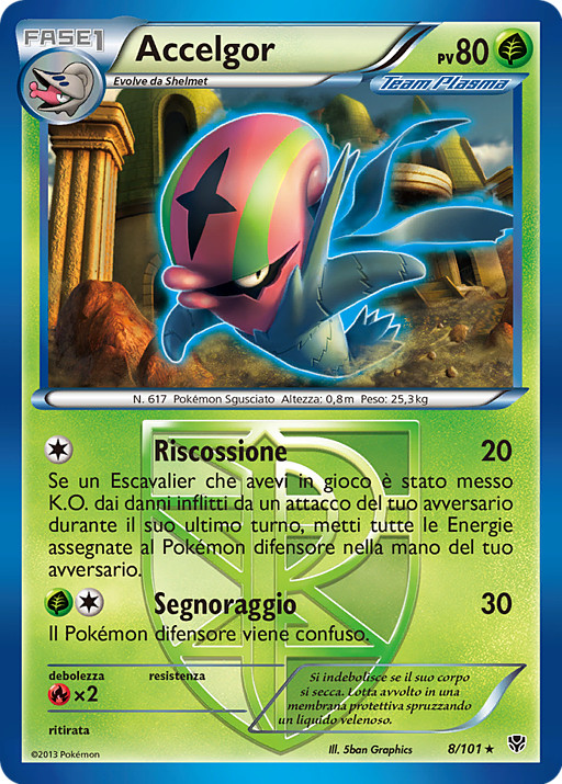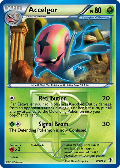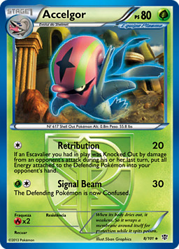 Si un Escavalier que tenías en juego quedó Fuera de Combate por el daño de un ataque de tu rival durante su último turno, pon todas las Energías unidas al Pokémon Defensor en la mano de tu rival.