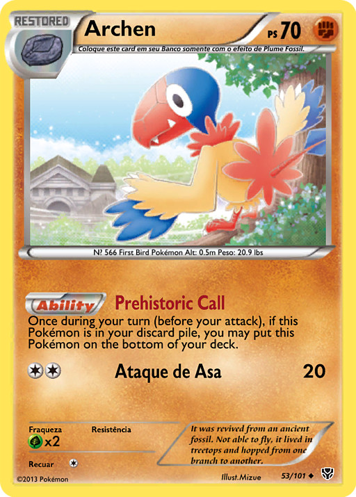 Mira las 7 últimas cartas de tu baraja. Puedes enseñar a un Archen que encuentres entre ellas y ponerlo en tu Banca. Pon el resto de cartas de nuevo en tu baraja y barájalas todas.
