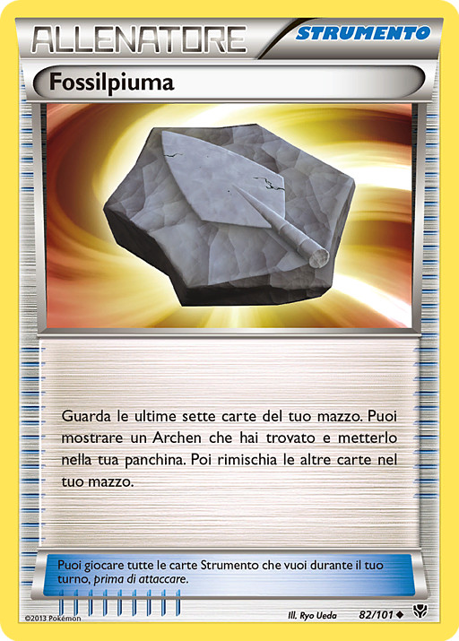 Mira las 7 últimas cartas de tu baraja. Puedes enseñar a un Archen que encuentres entre ellas y ponerlo en tu Banca. Pon el resto de cartas de nuevo en tu baraja y barájalas todas.