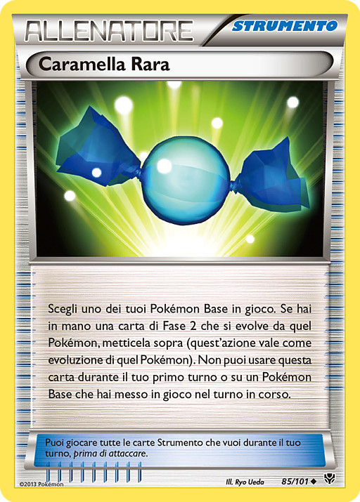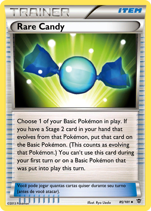 Elige a 1 de tus Pokémon Básicos en juego. Si tienes en tu mano una carta de Fase 2 que evolucione de ese Pokémon, pon esa carta sobre el Pokémon Básico. (Esto equivale a hacer evolucionar a ese Pokémon.) No puedes usar esta carta durante tu primer turno o sobre un Pokémon Básico que se haya puesto en juego en este turno.