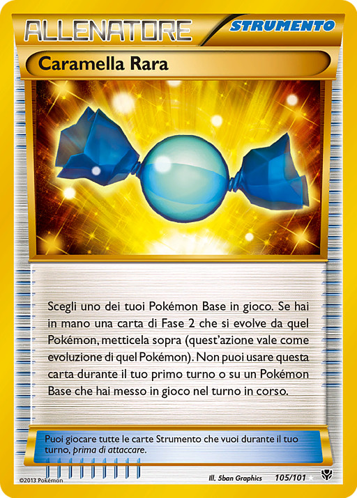 Elige a 1 de tus Pokémon Básicos en juego. Si tienes en tu mano una carta de Fase 2 que evolucione de ese Pokémon, pon esa carta sobre el Pokémon Básico. (Esto equivale a hacer evolucionar a ese Pokémon.) No puedes usar esta carta durante tu primer turno o sobre un Pokémon Básico que se haya puesto en juego en este turno.