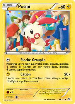 Pon las cartas de tu mano en tu baraja y barájalas todas. Después, roba 4 cartas. Si Minun está en tu Banca, roba 4 cartas más.