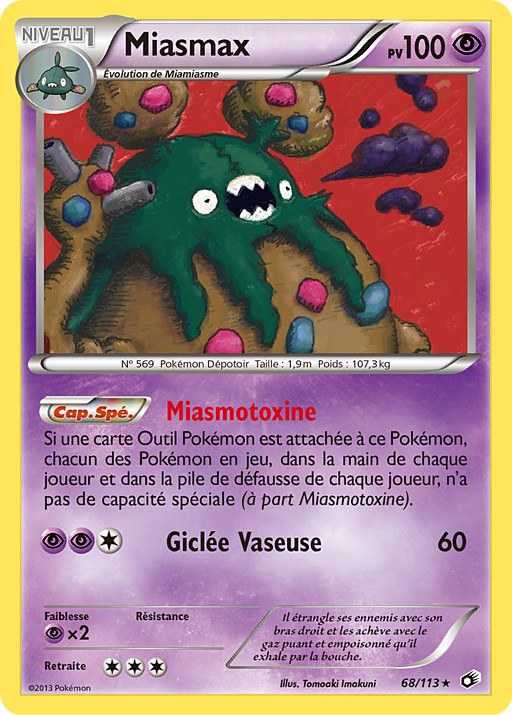 Si este Pokémon tiene una carta de Herramienta Pokémon unida a él, los Pokémon en juego, en la mano de cada jugador y en la pila de descartes de cada jugador no tienen ninguna habilidad (excepto Garbotoxina).