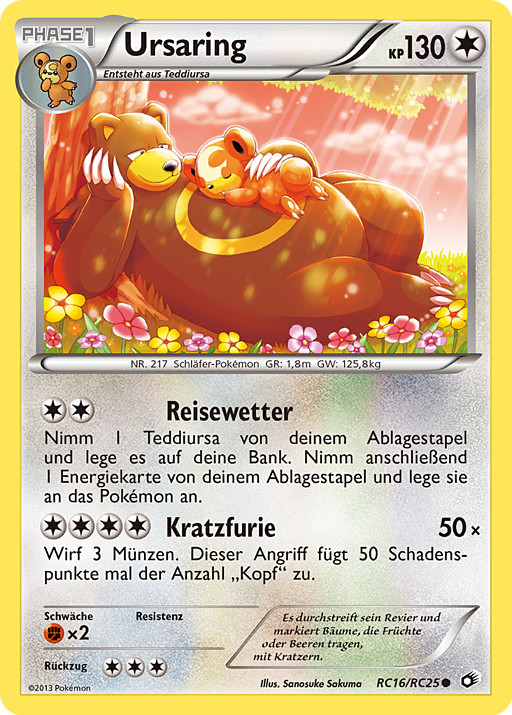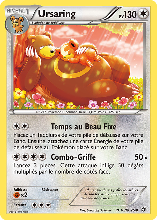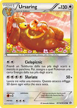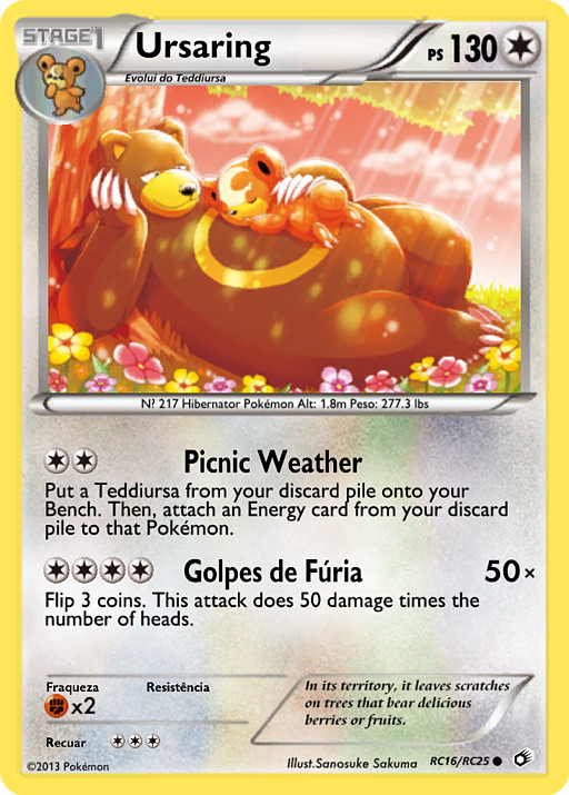 Pon a un Teddiursa de tu pila de descartes en tu Banca. Después, une una carta de Energía de tu pila de descartes a ese Pokémon.