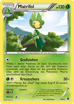 Elige a 1 de tus Pokémon. Busca en tu baraja una carta que evolucione de ese Pokémon y ponla sobre él. (Esto equivale a hacer evolucionar a ese Pokémon.) Baraja las cartas de tu baraja después.