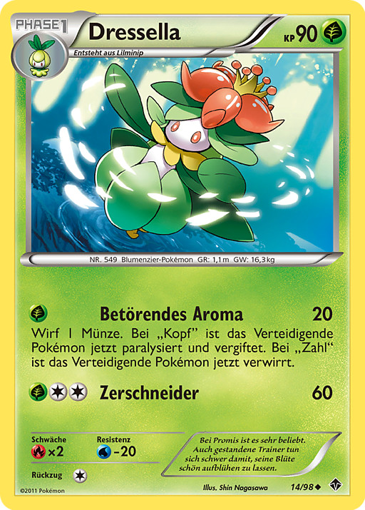 Lanza una moneda. Si sale cara, el Pokémon Defensor pasa a estar Paralizado y Envenenado. Si sale cruz, el Pokémon Defensor pasa a estar Confundido.