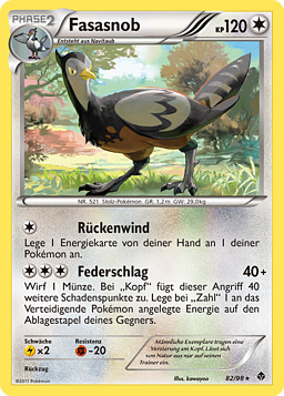 Lanza una moneda. Si sale cara, este ataque hace 40 puntos de daño más. Si sale cruz, descarta una Energía unida al Pokémon Defensor.