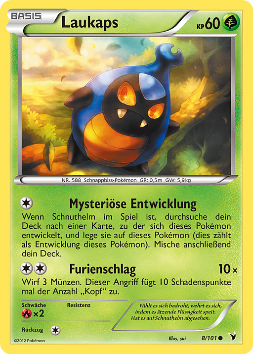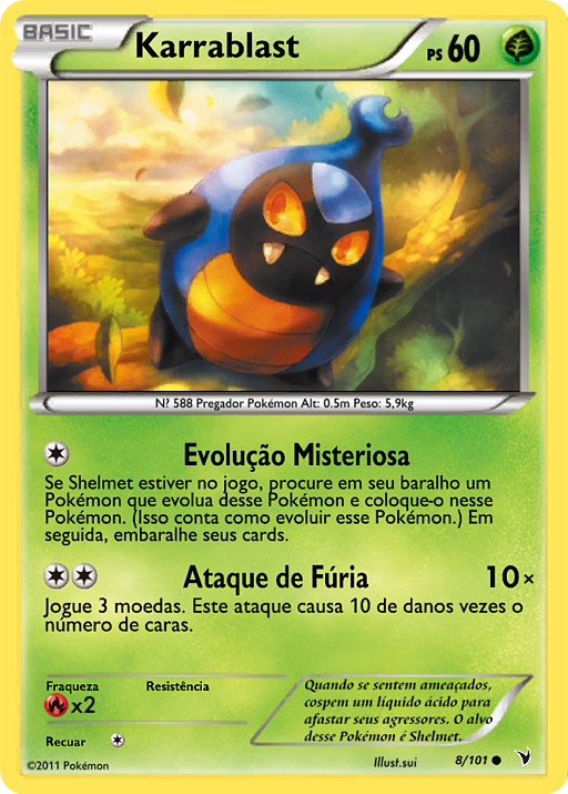 Si Shelmet está en juego, busca en tu baraja una carta que evolucione de este Pokémon y ponla sobre él. (Esto equivale a hacer evolucionar a este Pokémon.) Baraja las cartas de tu baraja después.