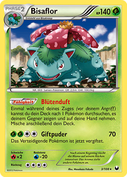 Una vez durante tu turno (antes de tu ataque), puedes buscar en tu baraja un Pokémon, enseñarlo y ponerlo en tu mano. Baraja las cartas de tu baraja después.