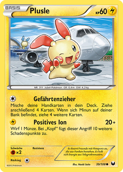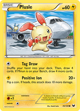 Pon las cartas de tu mano en tu baraja y barájalas todas. Después, roba 4 cartas. Si Minun está en tu Banca, roba 4 cartas más.