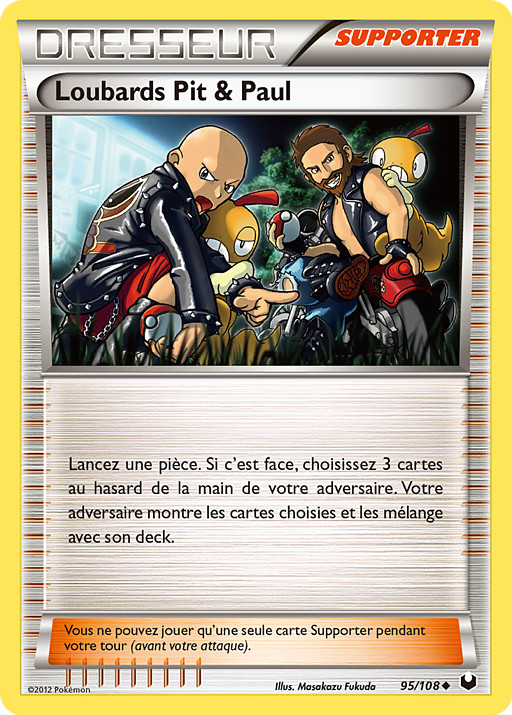 Lanza una moneda. Si sale cara, elige 3 cartas aleatorias de la mano de tu rival. Tu rival enseña esas cartas, las pone en su baraja y las baraja todas.
