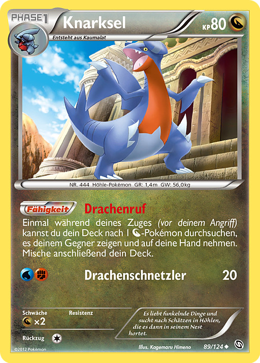 Una vez durante tu turno (antes de tu ataque), puedes buscar en tu baraja un Pokémon , enseñarlo y ponerlo en tu mano. Baraja las cartas de tu baraja después.