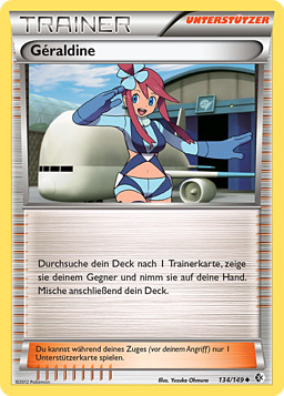 Busca en tu baraja una carta de Entrenador, enséñala y ponla en tu mano. Baraja las cartas de tu baraja después.