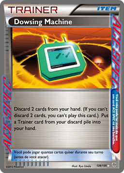 Descarta 2 cartas de tu mano. (Si no puedes descartar 2 cartas, no puedes jugar esta carta.) Pon una carta de Entrenador de tu pila de descartes en tu mano.