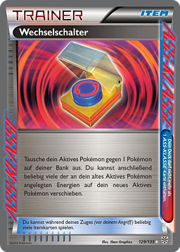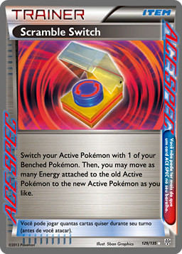 Cambia a tu Pokémon Activo por 1 de tus Pokémon en Banca. Entonces, puedes mover tantas Energías como quieras del anterior Pokémon Activo al nuevo Pokémon Activo.