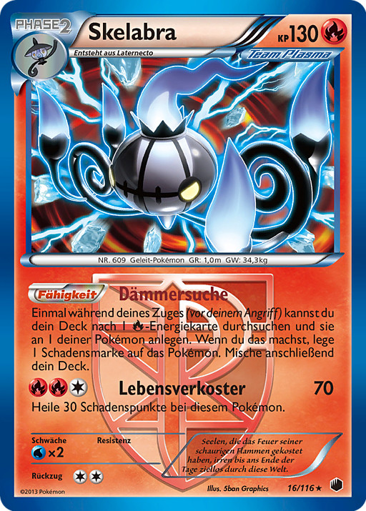 Una vez durante tu turno (antes de tu ataque), puedes buscar en tu baraja una carta de Energía y unirla a 1 de tus Pokémon. Si lo haces, pon 1 contador de daño en ese Pokémon. Baraja las cartas de tu baraja después.