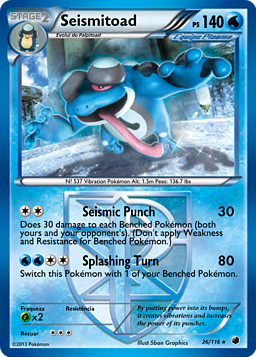 Hace 30 puntos de daño a cada uno de los Pokémon en Banca (tanto tuyos como de tu rival). (No apliques Debilidad y Resistencia para los Pokémon en Banca.)