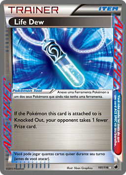 Si el Pokémon al que está unida esta carta queda Fuera de Combate, tu rival coge 1 carta de Premio menos.