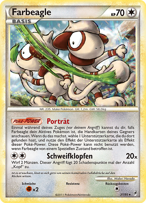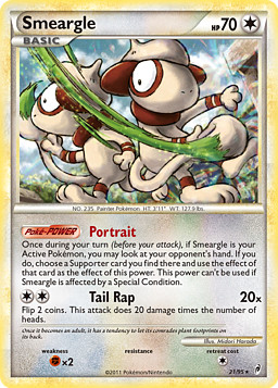 Una vez durante tu turno (antes de tu ataque), si Smeargle es tu Pokémon Activo, puedes mirar la mano de tu rival. Si lo haces, elige una carta de Partidario de su mano y usa el efecto de esa carta como el efecto de este poder. Este poder no se puede usar