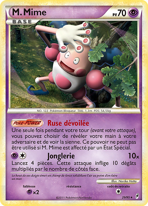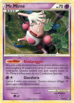 Una vez durante tu turno (antes de tu ataque), puedes hacer que tu rival y tú reveléis vuestras manos. Este poder no se puede usar si Mr. Mime se ve afectado por una Condición Especial.