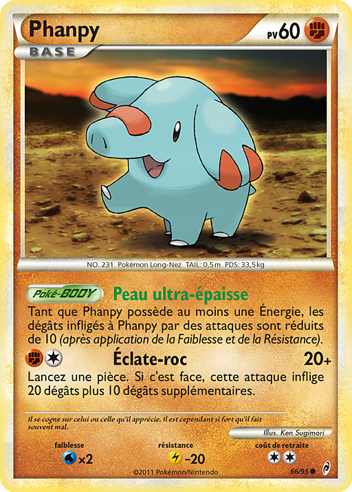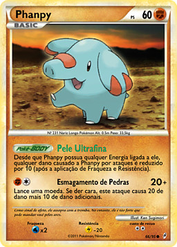 Mientras Phanpy tenga unida cualquier Energía, el daño infligido a Phanpy por ataques se reduce en 10 (después de aplicar Debilidad y Resistencia).