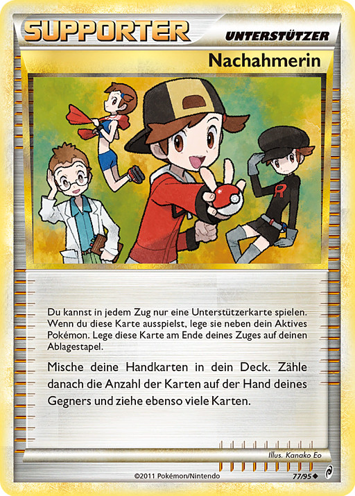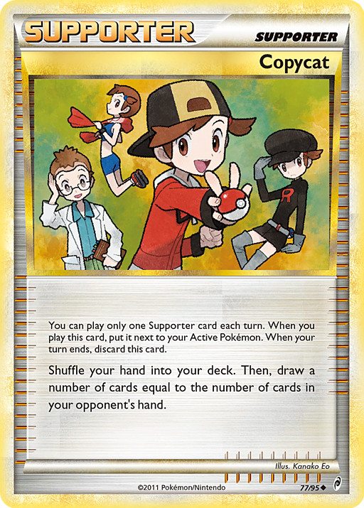 Baraja tu mano en tu mazo. Después roba un número de cartas igual al número de cartas en la mano de tu rival.
