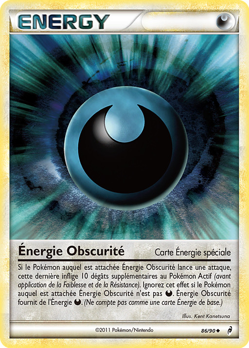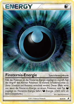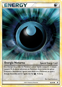 Si el Pokémon al que está unida la Energía Oscura ataca, el ataque hace 10 puntos de daño adicionales al Pokémon Activo (antes de aplicar Debilidad y Resistencia). Ignora este efecto si el Pokémon al que está unida la Energía Oscura no es . La Energía Oscura proporciona Energía . (No cuenta como una carta de Energía Básica.)