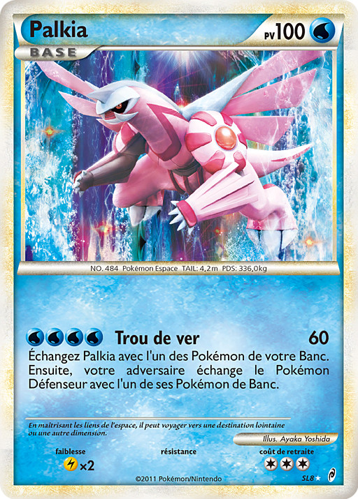 Cambia a Palkia por 1 de tus Pokémon en Banca. A continuación, tu rival cambiará el Pokémon Defensor por 1 de sus Pokémon en Banca.
