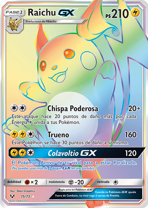 Pokémon en Fase 1 (210 HP) -Chispa Poderosa 20+ -Trueno 160 -Colavoltio GX 120
