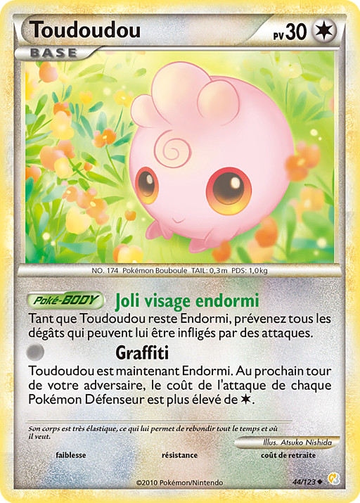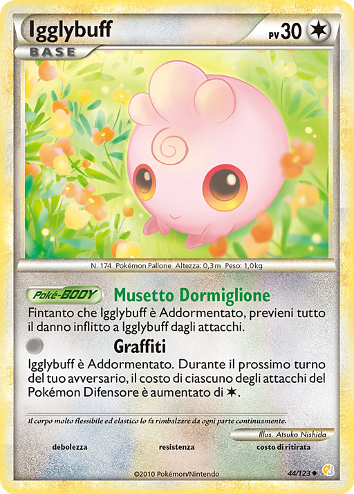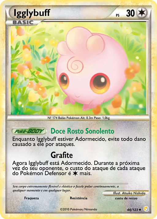 Igglybuff pasa a estar Dormido. Durante el próximo turno de tu rival, el coste de ataque de cada uno de los ataques del Pokémon Defensor es más.