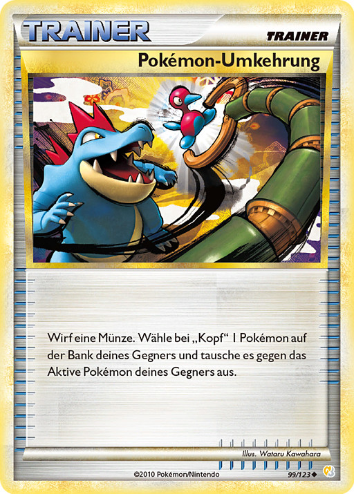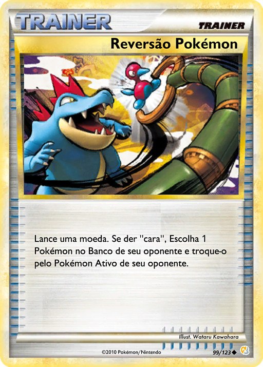 Lanza una moneda. Si sale cara, elige a 1 de los Pokémon en Banca de tu rival y cámbialo por el Pokémon Activo de tu rival.