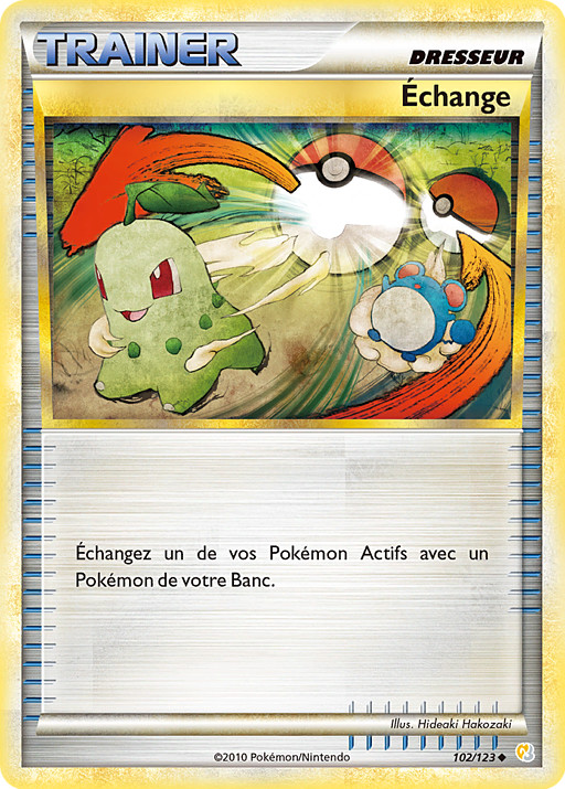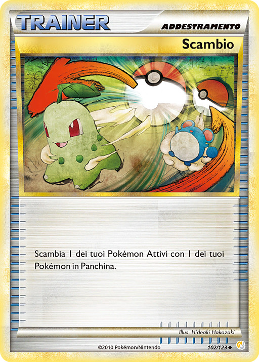 Cada jugador cambia su Pokémon Activo por 1 de sus Pokémon en Banca. Tu rival lo cambia primero. (Si algún jugador no tiene ningún Pokémon en Banca, no cambiará su Pokémon).