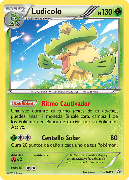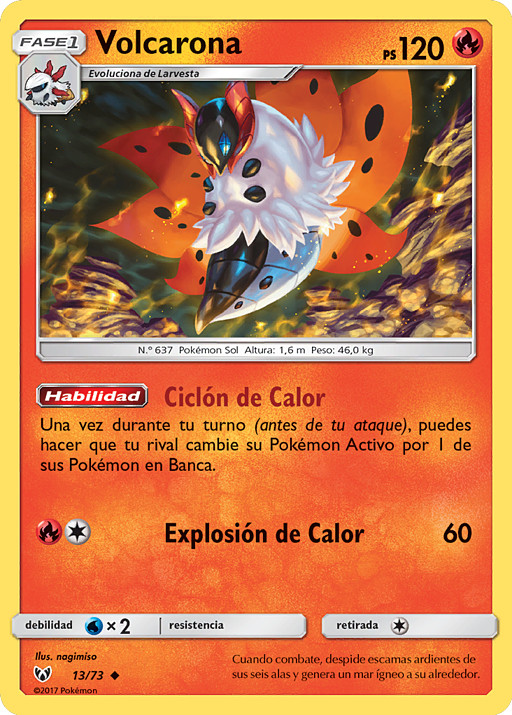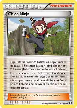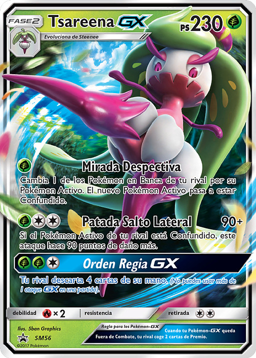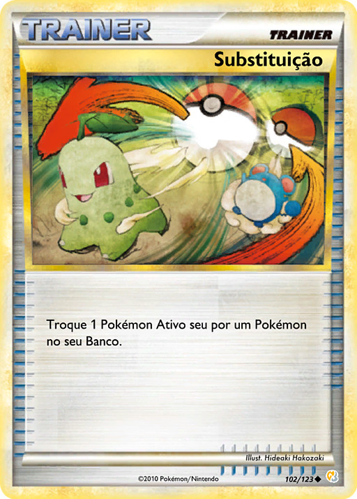 Elige 1 de tus Pokémon Básicos en juego. Busca en tu baraja 1 Pokémon Básico y cámbialo por ese Pokémon. (Todas las cartas unidas a este Pokémon, los contadores de daño, las Condiciones Especiales, los turnos de juego y todos los demás efectos permanecen en el nuevo Pokémon). Pon el primer Pokémon de nuevo en tu baraja y baraja todas las cartas.