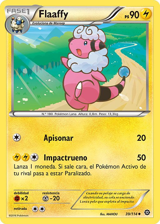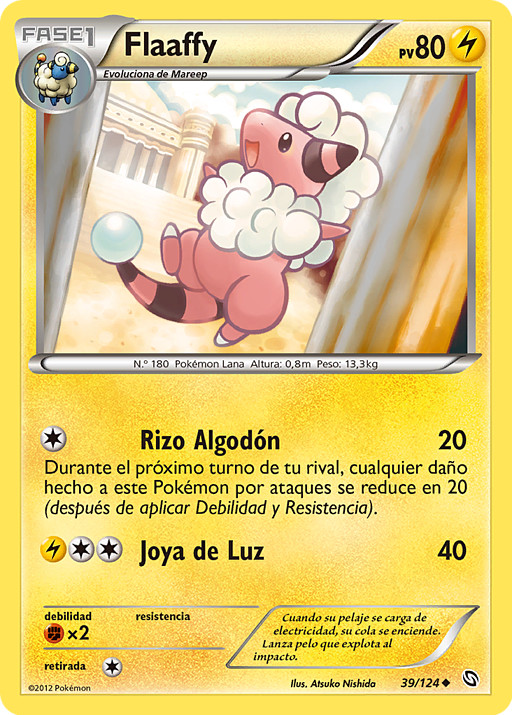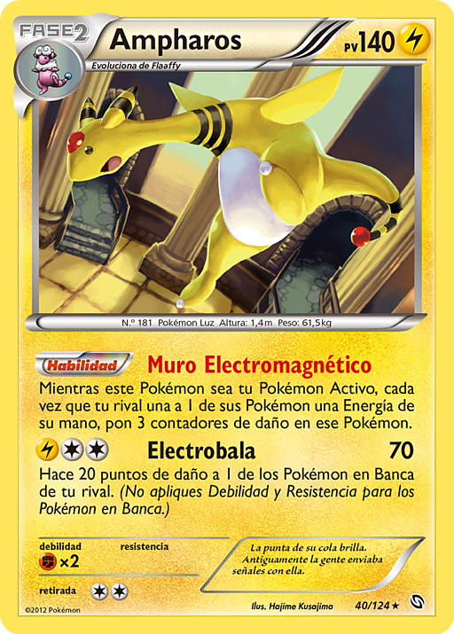 Lanza una moneda. Si sale cara, este ataque hace 40 puntos de daño más otros 40 puntos de daño adicionales. Si sale cruz, descarta una carta de Energía unida al Pokémon Defensor.