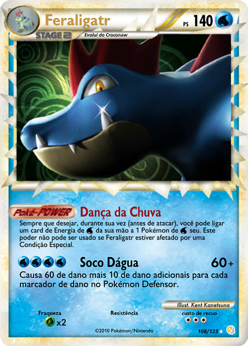 Todas las veces que quieras durante tu turno (antes de tu ataque), puedes unir una carta de Energía de tu mano a 1 de tus Pokémon . Este poder no se puede usar si Feraligatr se ve afectado por una Condición Especial.