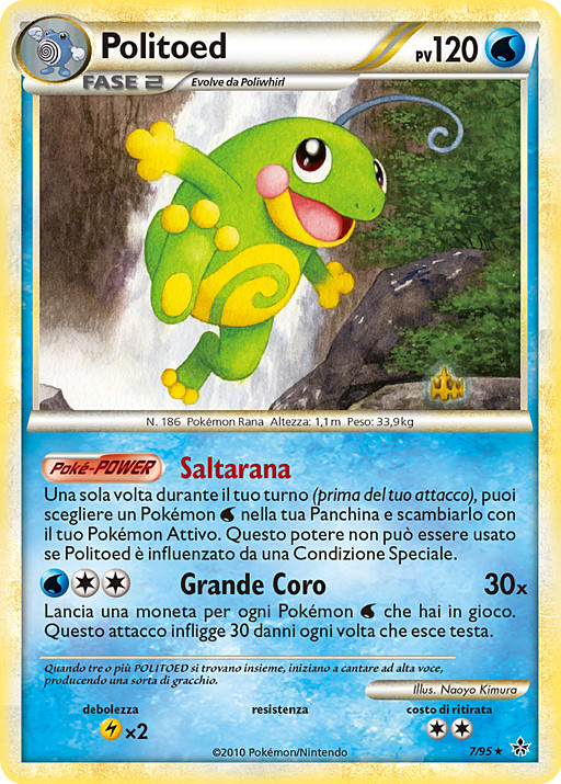 Una vez durante tu turno (antes de tu ataque), puedes elegir un Pokémon de tu Banca y cambiarlo con tu Pokémon Activo. Este poder no se puede usar si Politoed se ve afectado por una Condición Especial.