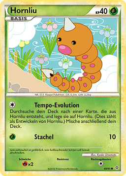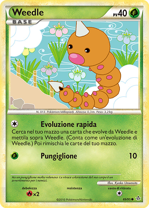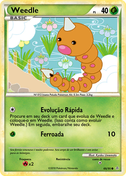 Busca en tu mazo una carta que evolucione de Weedle y ponla sobre Weedle. (Esto cuenta como evolucionar a Weedle.) Baraja tu mazo después.