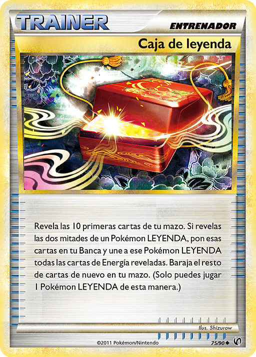 Revela las 10 primeras cartas de tu mazo. Si revelas las dos mitades de un Pokémon LEYENDA, pon esas cartas en tu Banca y une a ese Pokémon LEYENDA todas las cartas de Energía reveladas. Baraja el resto de cartas de nuevo en tu mazo. (Solo puedes jugar 1 Pokémon LEYENDA de esta manera.)