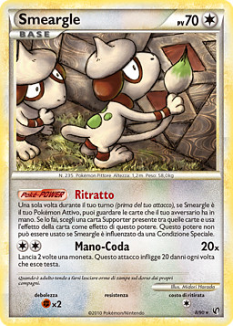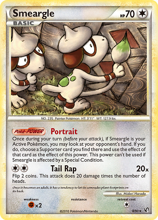 Una vez durante tu turno (antes de tu ataque), si Smeargle es tu Pokémon Activo, puedes mirar la mano de tu rival. Si lo haces, elige una carta de Partidario de su mano y usa el efecto de esa carta como el efecto de este poder. Este poder no se puede usar