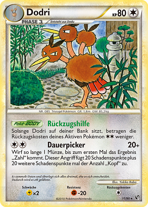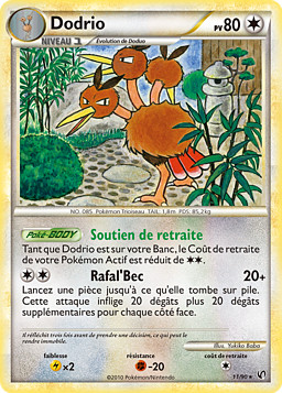 Mientras Dodrio esté en tu Banca, el Coste de Retirada de tu Pokémon Activo es menos.