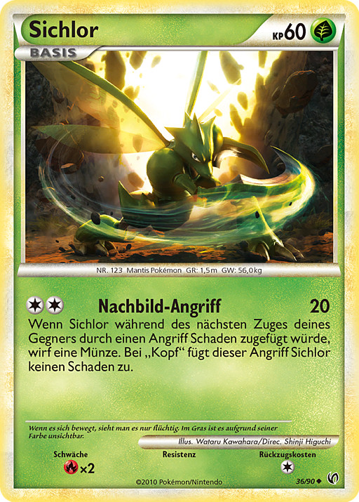 Durante el próximo turno de tu rival, si Scyther resulta dañado por un ataque, lanza una moneda. Si sale cara, evita el daño infligido por ese ataque a Scyther.