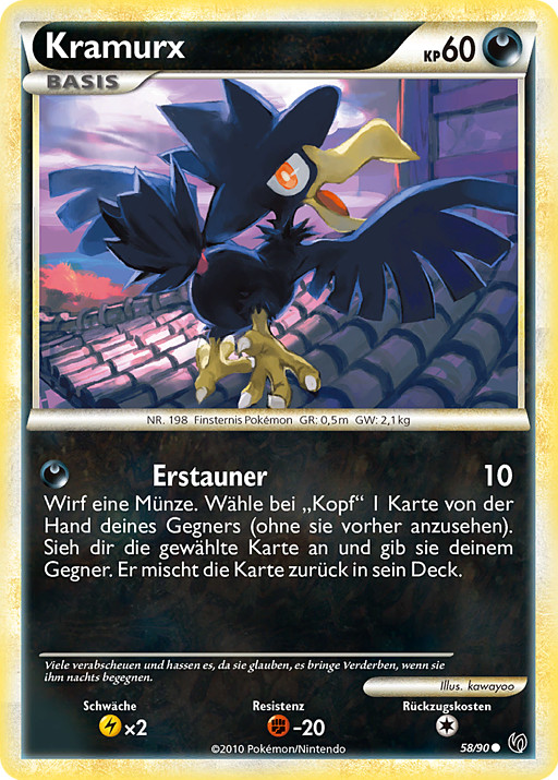 Lanza una moneda. Si sale cara, elige 1 carta de la mano de tu rival sin mirar. Mira la carta que has elegido y luego haz que tu rival baraje esa carta en su mazo.